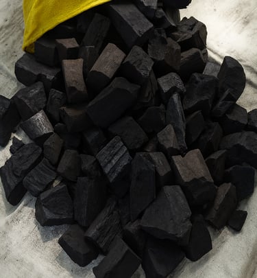 Quality charcoal and leaves for export.